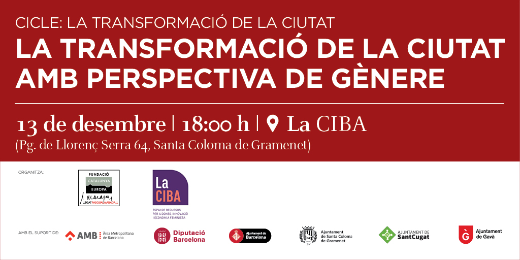 El dimarts 13 de desembre es va celebrar l’última jornada sobre governança metropolitana del cicle “La transformació de la ciutat”, on es va abordar “La transformació de la ciutat amb perspectiva de gènere”. La Fundació Catalunya Europa ho va organitzar juntament amb l’Ajuntament de Santa Coloma de Gramenet a la CIBA, un espai municipal en constant creixement dedicat a recursos per a dones, innovació i economia feminista.