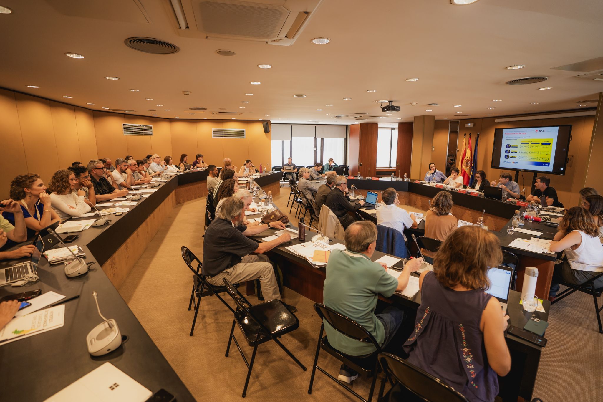 Gairebé una vintena d’expertes i experts dels àmbits acadèmic, institucional, municipal i de la societat civil van compartir idees, reptes i experiències sobre com avançar cap a una metròpolis més resilient. S’hi van abordar qüestions com la gestió de les platges com a infraestructures urbanes essencials, la necessitat d’adaptar les ciutats a l’augment de temperatures i fenòmens extrems, o la urgència de revisar el planejament urbanístic amb criteris de justícia climàtica. També es va remarcar que el transport privat, a més de ser part del problema, és sovint qui més pateix els impactes del canvi climàtic, i que cal una millor coordinació entre administracions per evitar que els municipis afrontin sols aquests desafiaments.